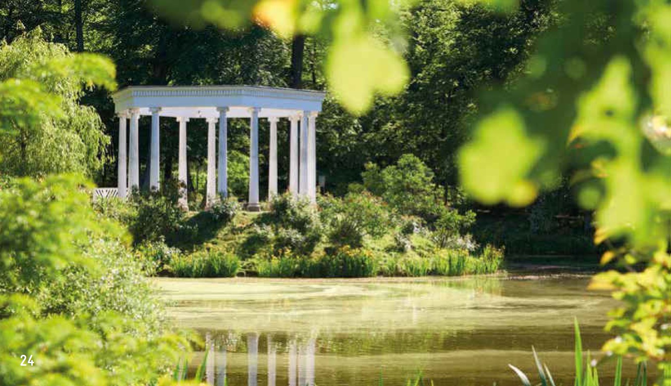 • Romantische Akzente: Sie ergänzte den Park um ein Rasenrondell, einen Rosentempel und Gedenkurnen.