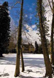 • Historische Bäume: Zwei Tannen, die 1895 von Kaiserin Friedrich und dem Prinzen von Wales gepflanzt wurden, rahmen noch heute das Hauptportal.