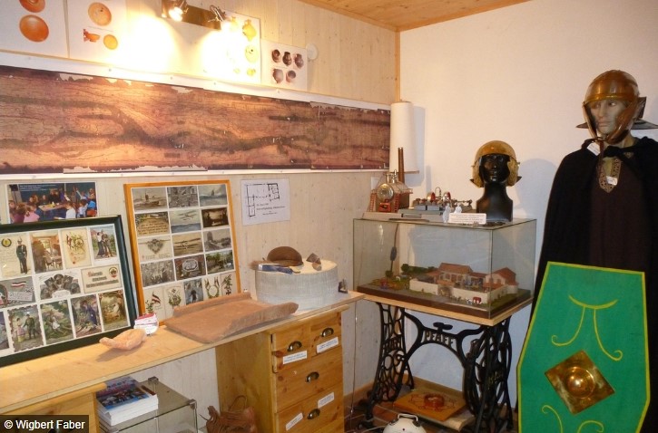 Neben der Geschichte von Dienheim mit dem berühmtesten römischen Grabstein, der in Deutschland gefunden wurde (originalgetreue Rekonstruktion der Fundsituation im Jahre 1834), werden Modelldampfmaschinen sowie die Herstellung von Zinnfiguren (Formenbau und Gießvorgang) gezeigt und wenn die Besucher Zeit haben (mindestens 2 h), auch betrieben.