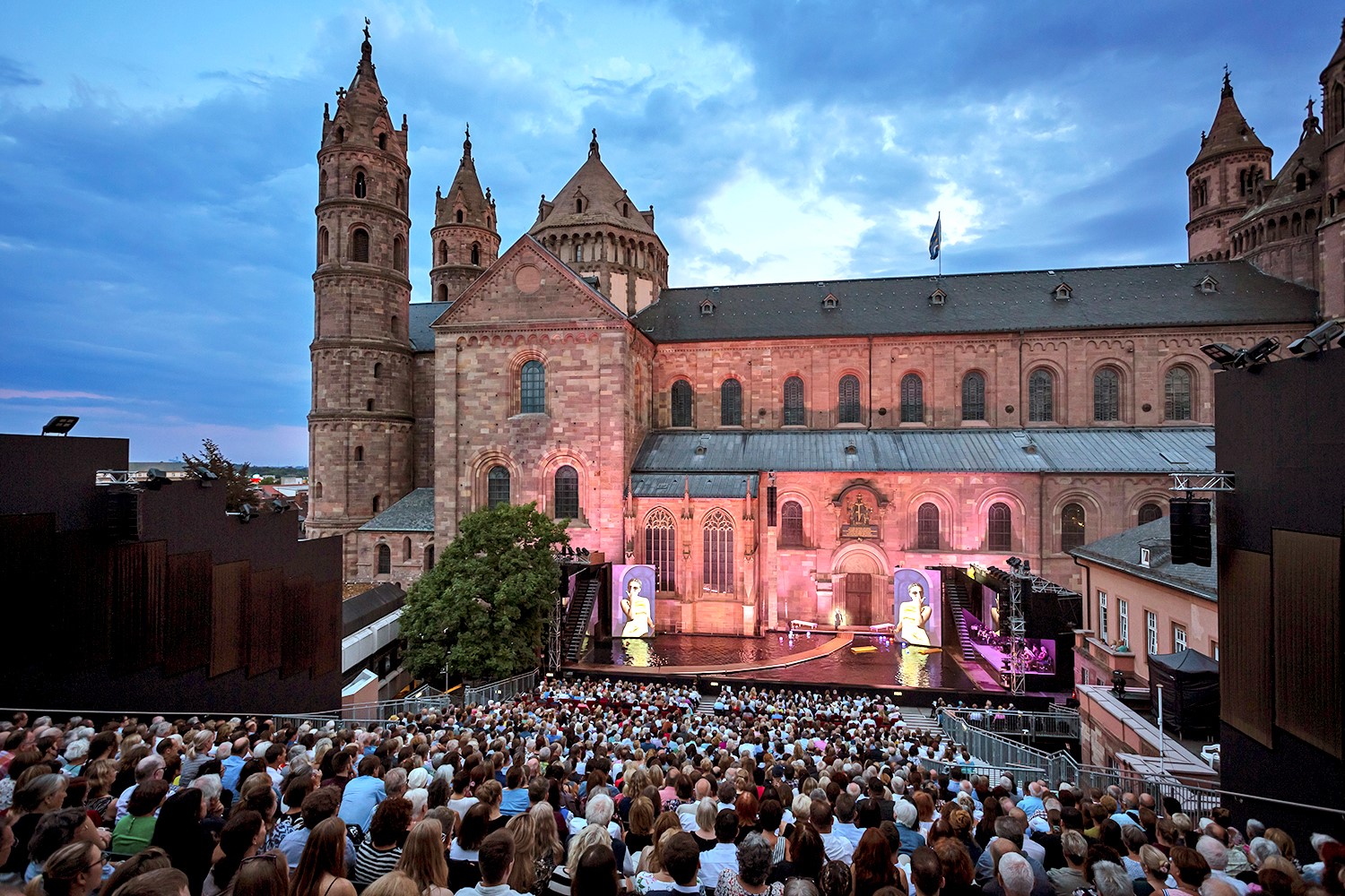 Seit 2002 finden die Nibelungen-Festspiele jährlich im Sommer als Open-Air-Theaterereignis vor dem Dom statt. Die Festspiele erreichen jährlich ein großes Publikum und bescheren der Stadt am Rhein eine hohe Aufmerksamkeit. Aber nicht nur die Aufführungen vor der Domkulisse machen die Festspiele zu einem einmaligen Kulturereignis: Auch das hochwertige Rahmenprogramm sowie der Heylshofpark, der zu Deutschlands schönsten Theaterfoyers zählt, lockt jedes Mal zahlreiche Besucher.