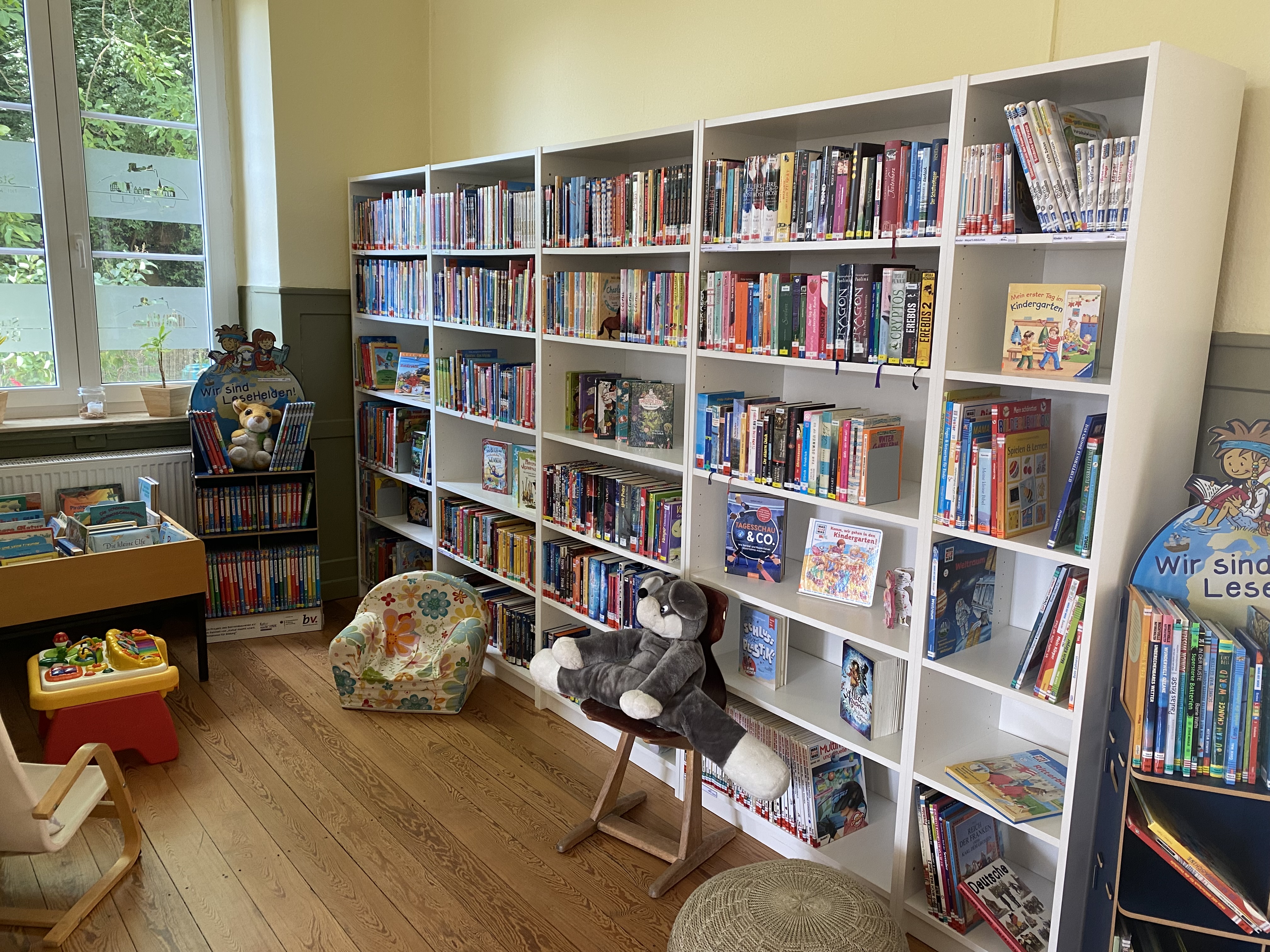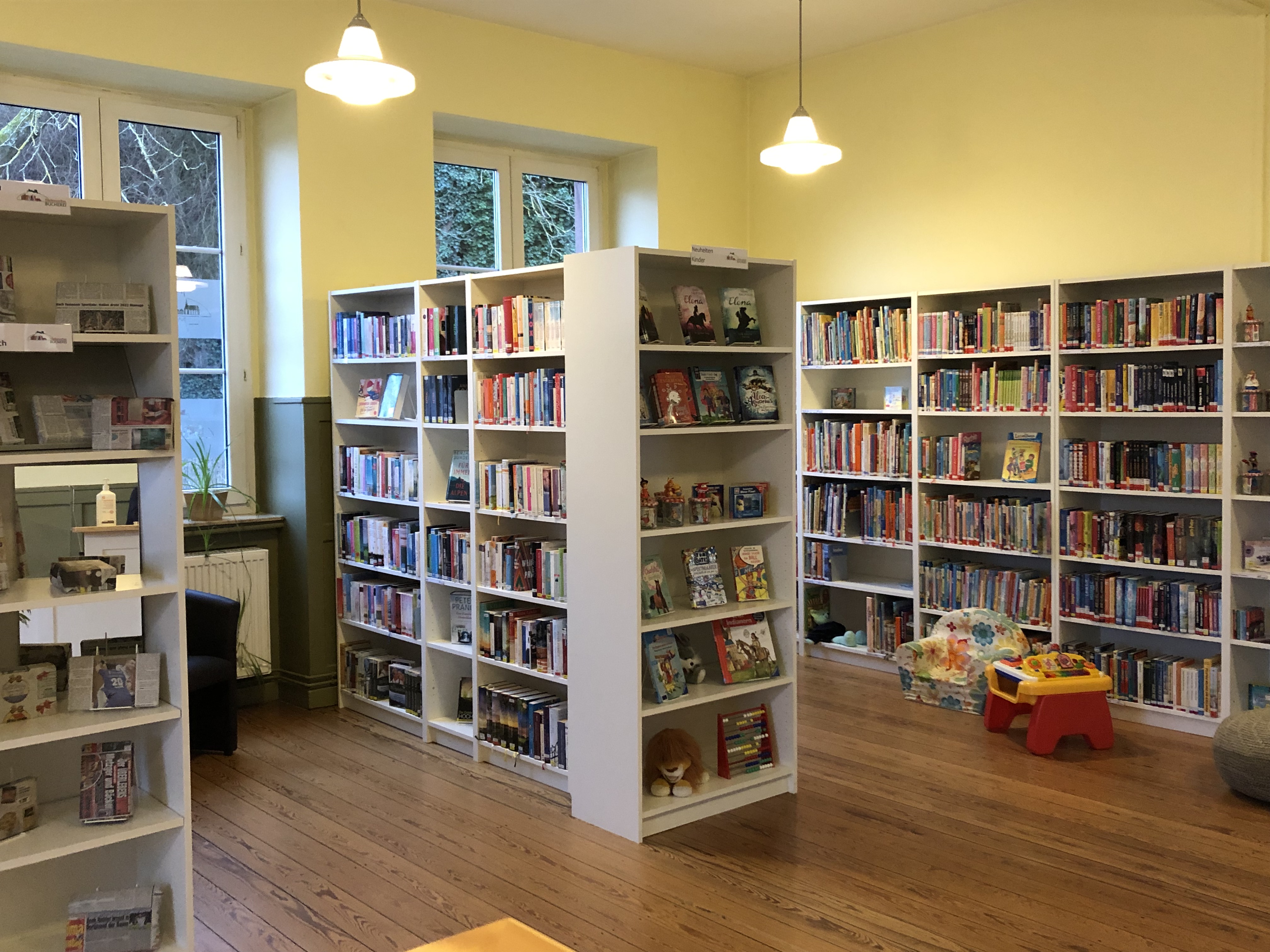 Ca. 480 Sachbücher, 1500 Romane, 1300 Kinder- und Jugendbücher sowie Tonies, Hörsticks, CDs